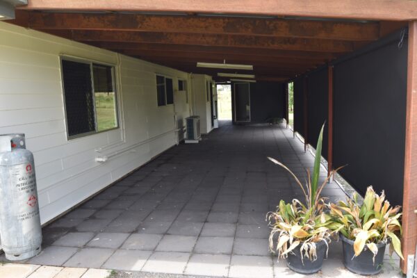 Full length verandah at the rear of the home with separate bathroom & toilet. Roller blinds on the western side.