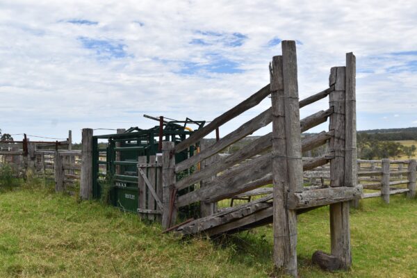Solid timber cattle yards with Bentley squeeze crush & loading ramp.