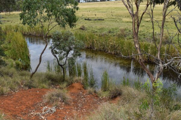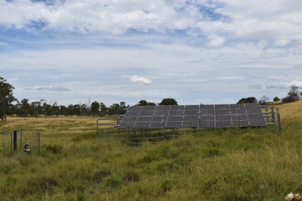 Solar powered pump on bore supplies year round water to a large dam.