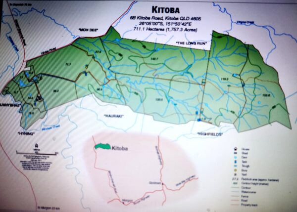 * ‘Kitoba’ is quality country suited to backgrounding, bullock finishing or breeding. Will carry approx. 500 young cattle to feedlot export feeder weight, 400 bullocks to finishing or 350 breeders with progeny removed as weaners. Owners have carried up to700 backgrounders in a very good season.