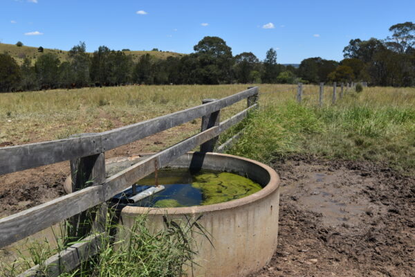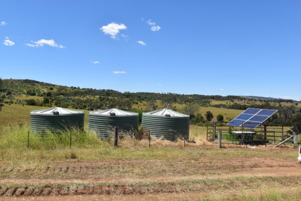 Stock bore equipped with solar pump, holding tank & gravity fed watering troughs.